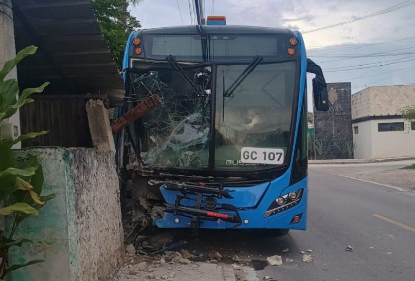 Un autobús del sistema Va y Ven de la ruta Dzityá iba transitando sobre la calle 19 x 14 y 16 de tuvo un accidente cuando una llanta se amarró, provocando se fuera de lado y chocara con un muro. La llanta delantera derecha se frenó repentínamente ocasionando que el conductor del camión perdiera el control del volante chocando contra el muro de una casa.