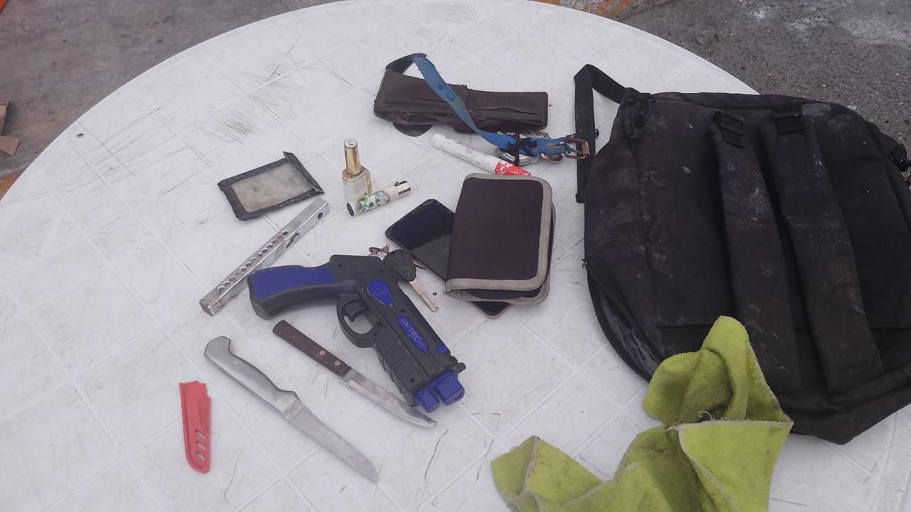 El agresor fue detenido e identificado como J.L.M., de 45 años, con domicilio en la comisaría de Flamboyanes, y fue trasladado para los trámites legales correspondientes. En la revisión se le aseguraron diversas armas blancas que llevaba entre sus pertenencias, así como una réplica de arma de fuego de plástico.