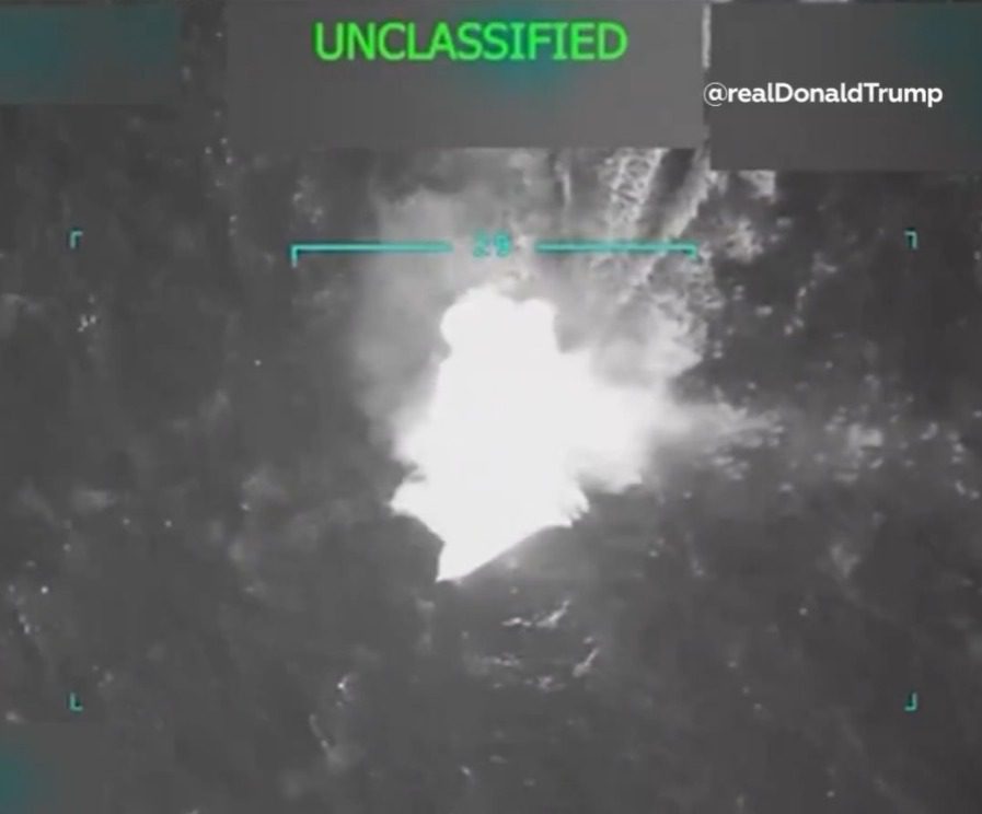 Trump detalló que el ataque se produjo mientras los presuntos terroristas “se encontraban en aguas internacionales transportando narcóticos ilegales con destino a los Estados Unidos”.