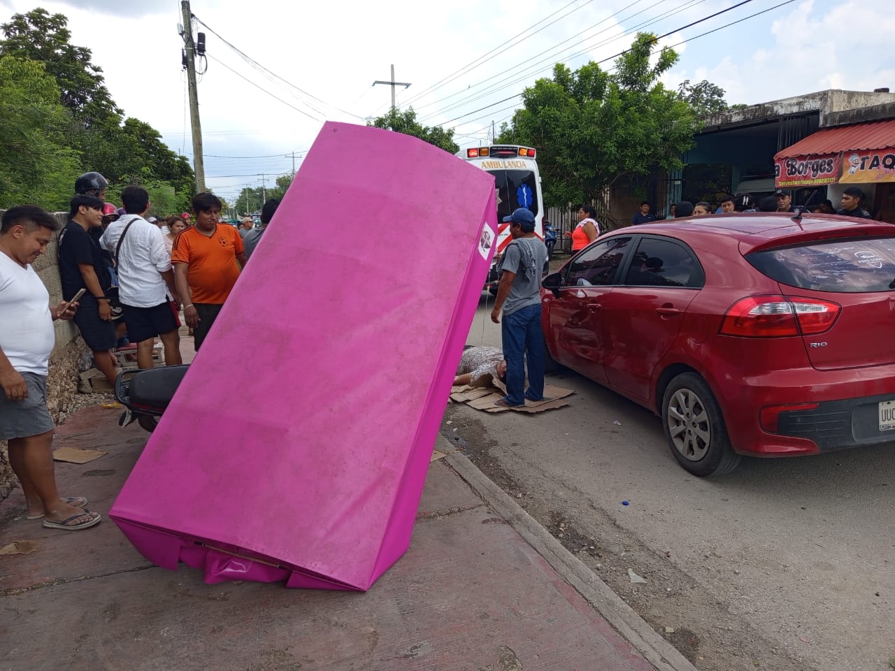 Por la tarde del martes se registró un accidente de tránsito en la calle 59 por 6 y 4 de la colonia San Camilo, en Kanasín, en el que se vieron involucrados un automóvil particular y un mototaxi, resultando varias personas lesionadas. De acuerdo con los datos recabados, un auto modelo Kia Rio de color rojo, modelo 2017, con placas UUC-737-L del estado de Quintana Roo, conducido por Moisés Zavala Requena, de 46 años y vecino de la misma colonia, transitaba de poniente a oriente cuando, al intentar rebasar un vehículo estacionado, invadió el carril contrario e impactó a un mototaxi habilitado en una motocicleta Vento 110, modelo 2018, color rosa, con placas 11YWX6 del estado de Yucatán.