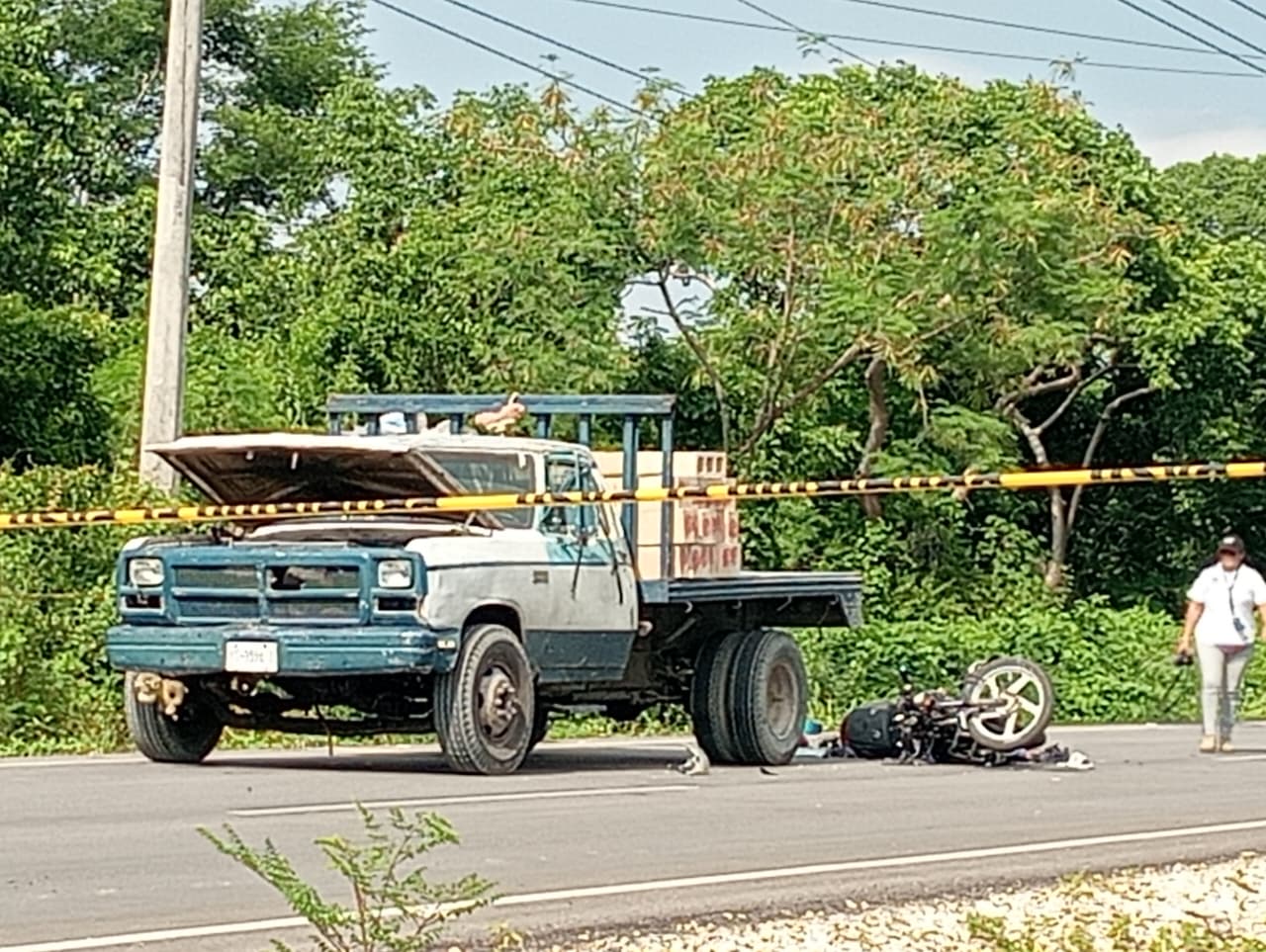 Ayer se registró un trágico accidente en el kilómetro 7 del periférico, cerca del puente de Dzununcán, donde un motociclista perdió la vida tras impactarse contra un camión de tres toneladas, cargado de bloques, en la lateral interior de la vía.