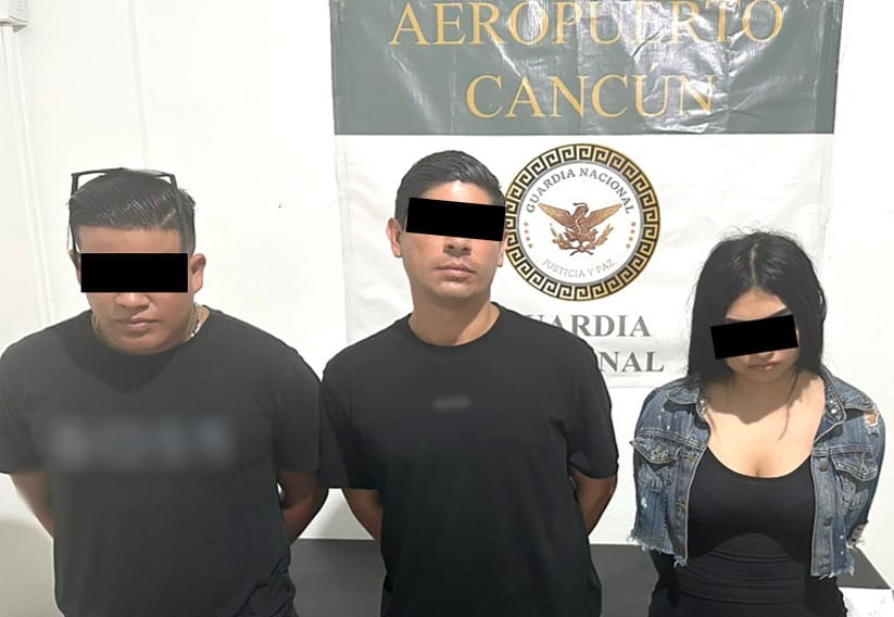 Tres personas, entre ellas una mujer de nacionalidad extranjera, fueron detenidas en el Aeropuerto Internacional de Cancún (AIC).