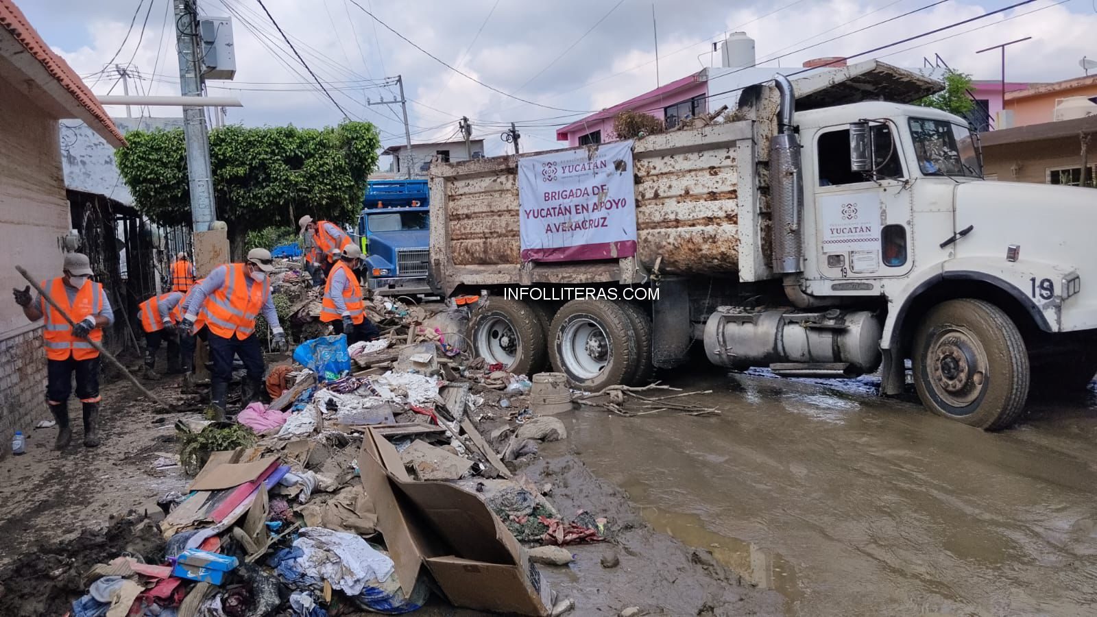 Según el gobierno estatal, hasta los puntos más apartados de esta región veracruzana han llegado las y los brigadistas yucatecos, acompañados de maquinaria pesada y equipo especializado enviado por el gobernador Joaquín Díaz Mena con el propósito de contribuir a las labores de limpieza, desazolve y recuperación de la infraestructura urbana y social dañada.