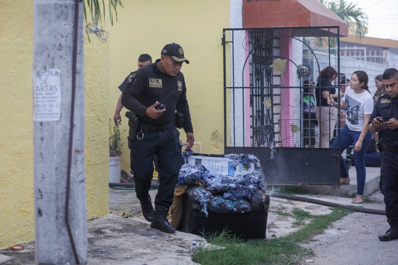 La presidenta municipal de Mérida, Cecilia Patrón Laviada, acudió esta tarde al aviso del incendio de una casa en el fraccionamiento Unidad Morelos.