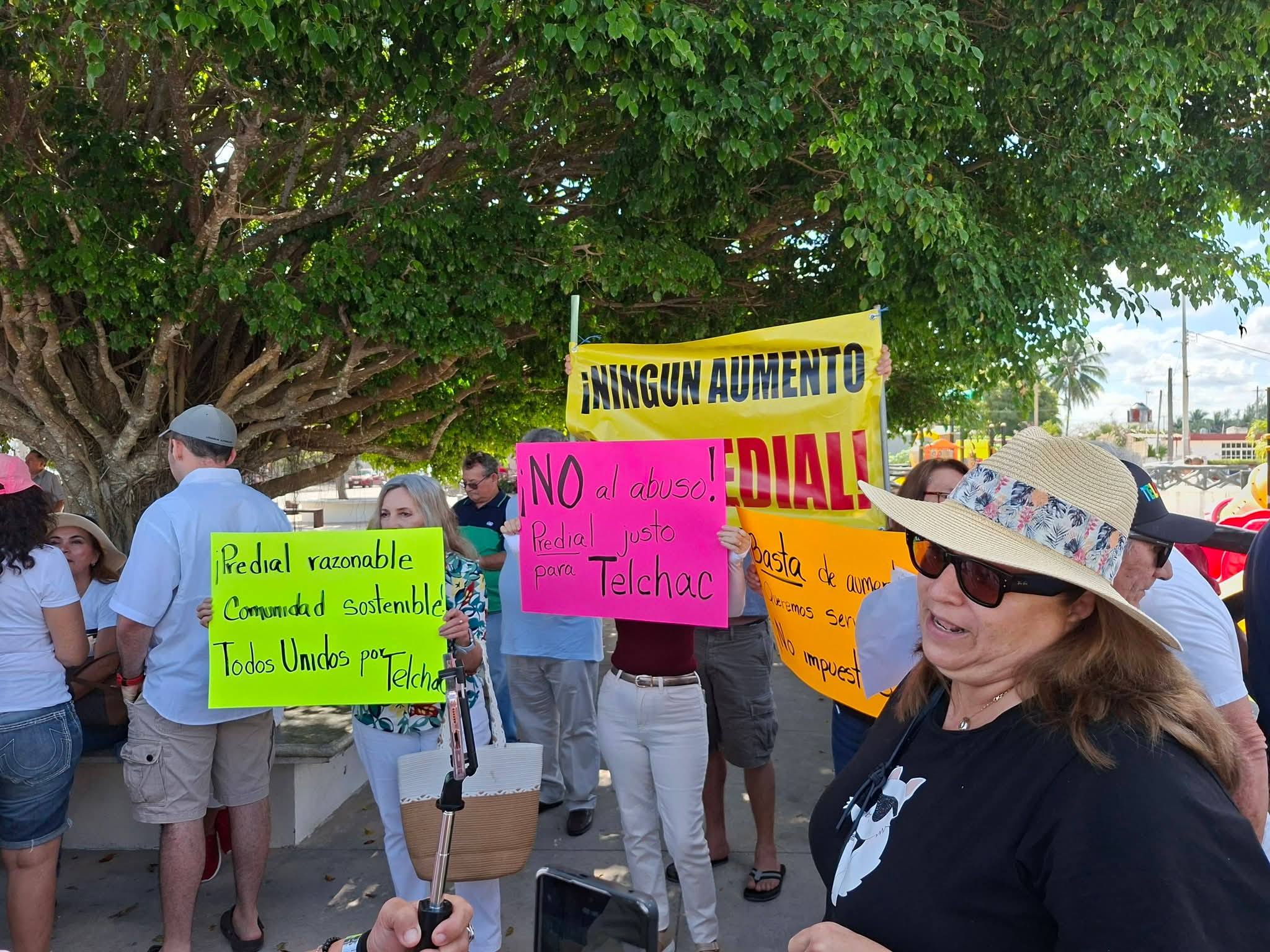 Vecinos y propietarios de predios inconformes con los aumentos del predial en Telchac Puerto se manifestaron durante el fin de semana