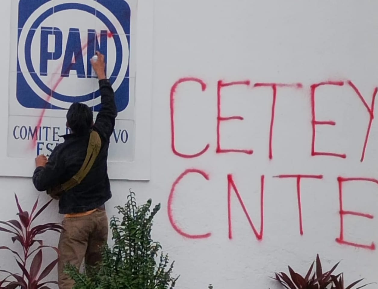 Aproximadamente 200 personas miembros de la Coordinadora Nacional de Trabajadores de la Educación (CNTE), marcharon del Monumento a la Patria hacia Palacio de Gobierno, donde realizaron pintas en inmuebles públicos y privados. Algunos de ellos llevaban piedras en las manos. Llegaron en autobuses e iniciaron con mítin de maestros oaxaqueños en el Monumento a la Patria. Con autobuses bloquearon el tráfico frente a Palacio de Gobierno donde realizaron pintas al igual que a lo largo de todo el trayecto, incluyendo monumentos históricos y la sede del PAN Yucatán.