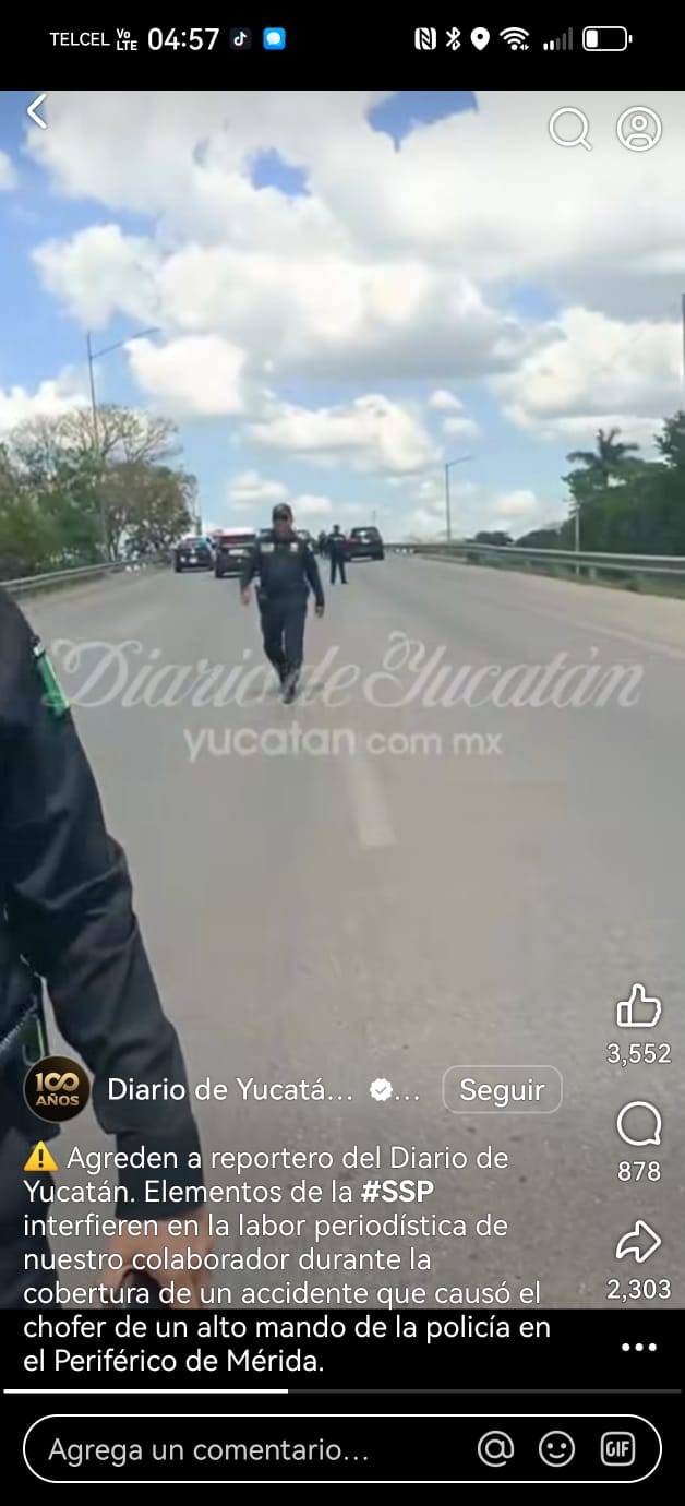Respecto al video difundido en el que se pretende señalar una supuesta agresión a representantes de medios de comunicación, se reitera que el artículo 167 del Reglamento de la Ley de Tránsito y Vialidad del Estado de Yucatán establece que los peatones deben respetar las normas, las indicaciones de los agentes y los dispositivos de control del tránsito. Esto incluye las delimitaciones que el personal operativo realiza de manera directa en el lugar de los hechos, sin que necesariamente deba colocarse cinta preventiva para hacer válido el perímetro de seguridad. De igual manera, el elemento involucrado en la interacción con el periodista fue turnado al Departamento de Asuntos Internos para los efectos correspondientes.