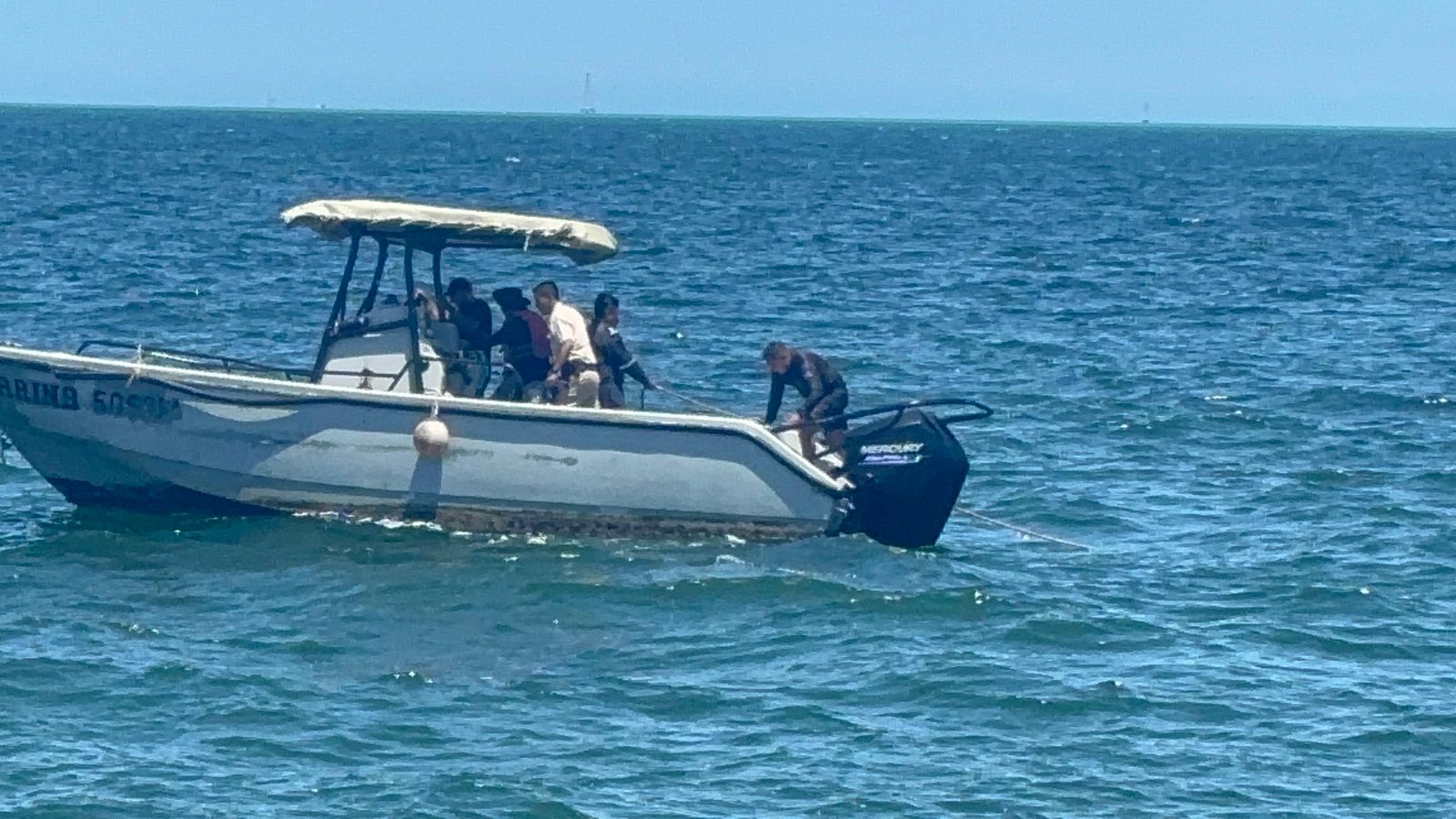 Después de un tiempo en que la Semar trabajó apoyada con un buzo, la lancha se retiró.